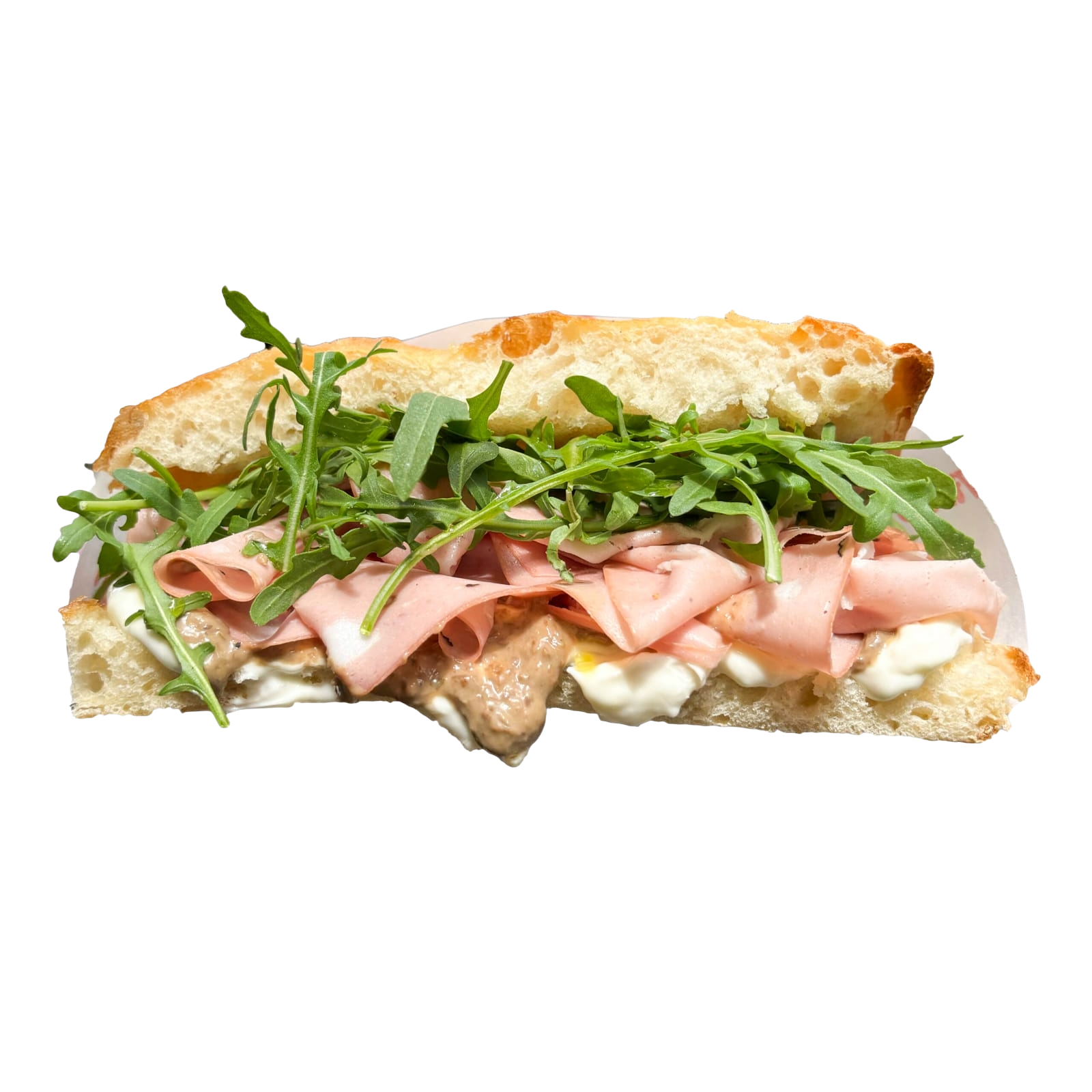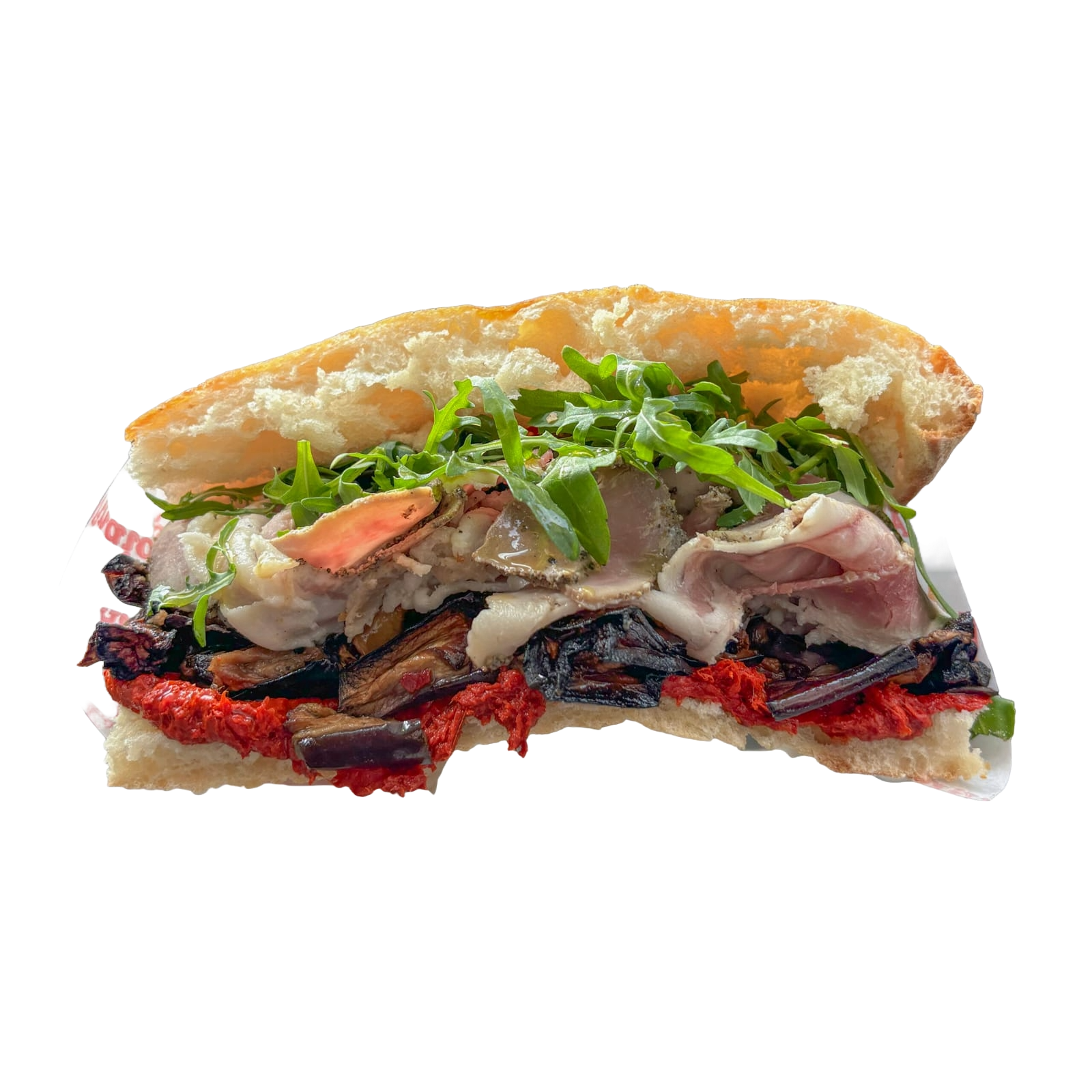 პორკეტა, გამომცხვარი ბადრიჯანი, რუკოლა, პასტა როსსო