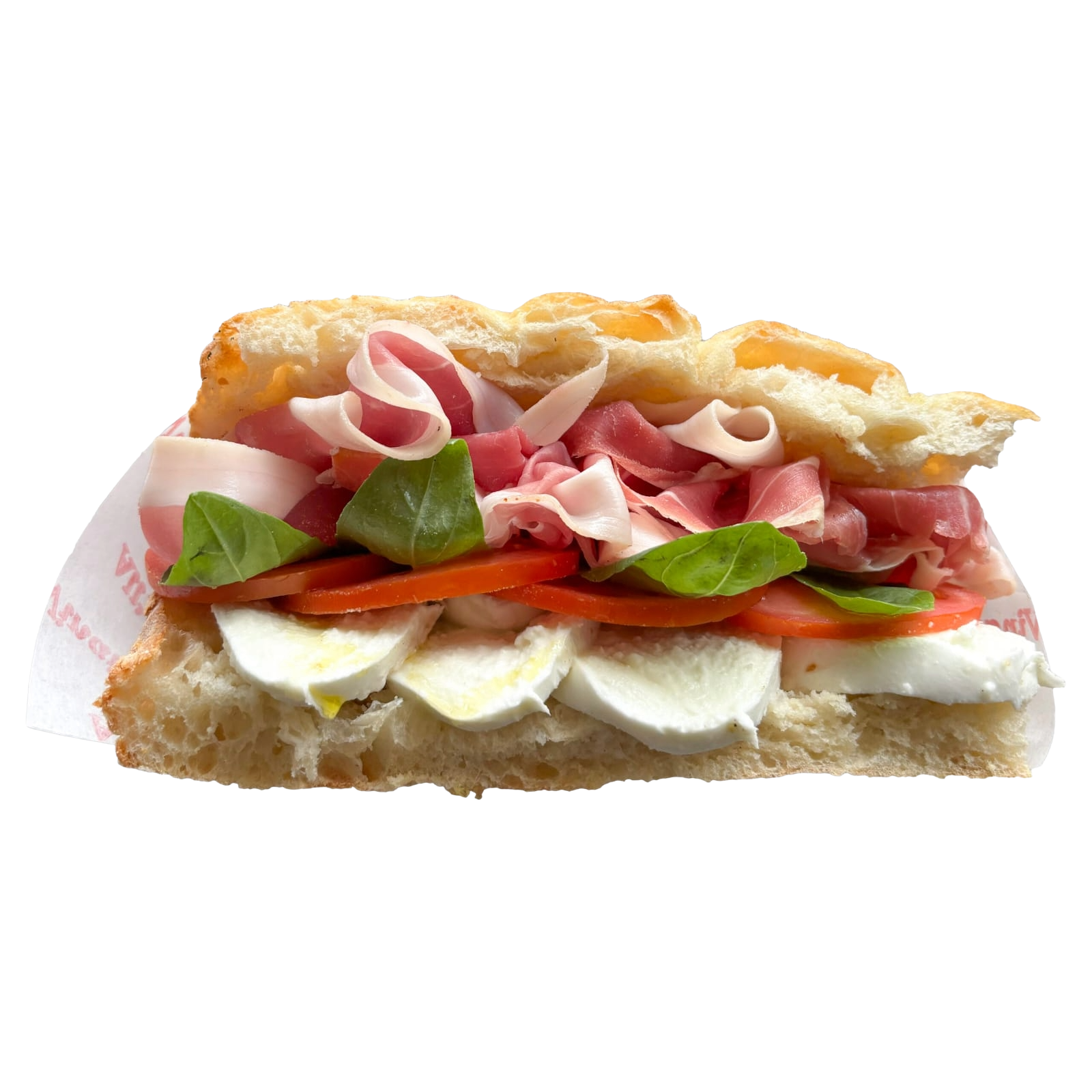 პროშუტო კრუდო, მოცარელა, პომიდორი, ბაზილიკი